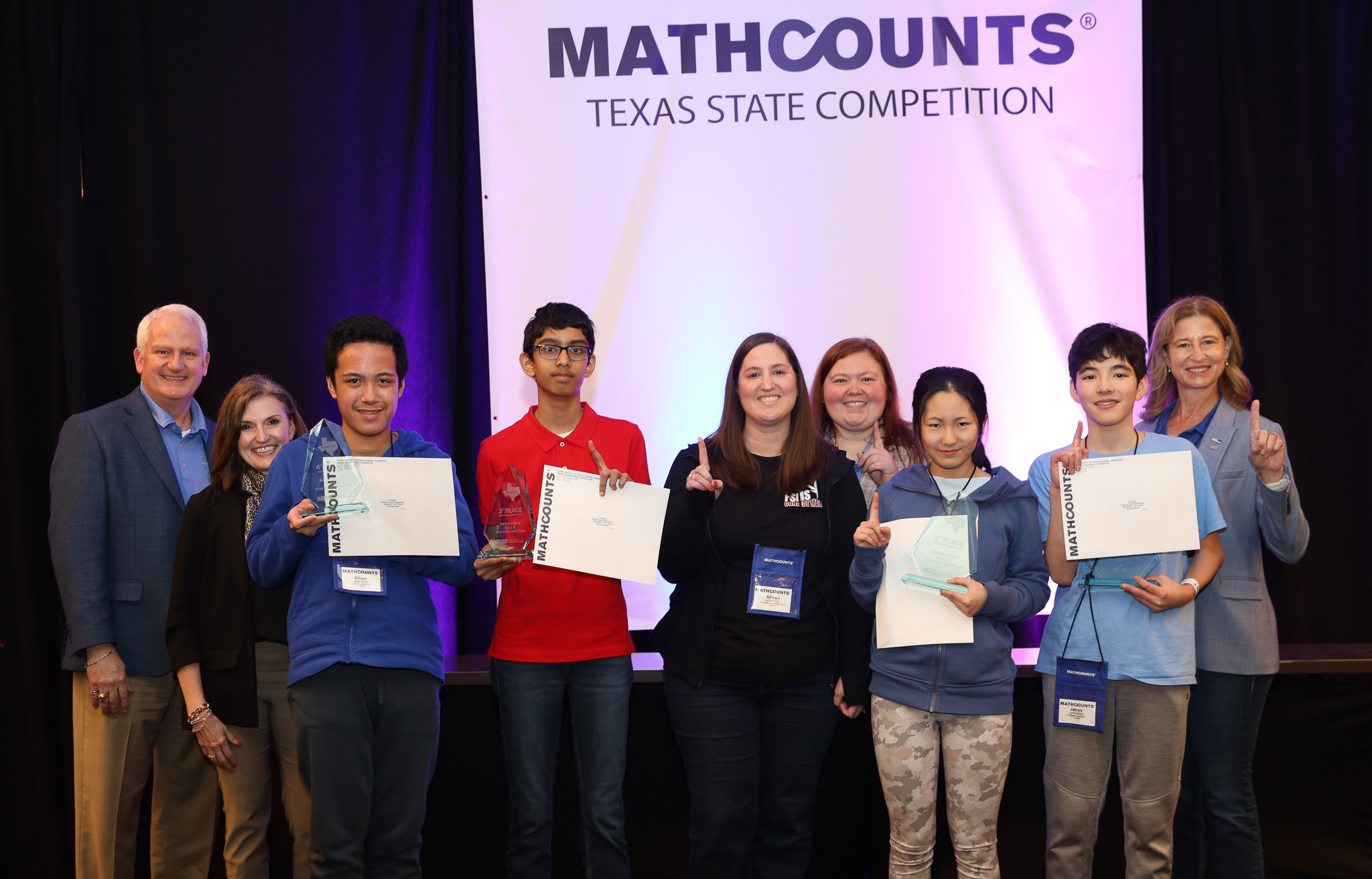 ![]() 2026 Texas State MATHCOUNTS Competition Congratulations to James Stewart of Evergreen Preparatory, who was the first place individual and first place Countdown Round Winner, and Fort Settlement Middle School, the first place team at this year's Texas State MATHCOUNTS competition. Their coach, Allison Hicks, will coach the Texas National Team for the 2026 National MATHCOUNTS Competition, May 8-12, 2026 in Orlando, FL. The national team consists of the top four individuals from our State Competition: James Stewart (Evergreen Preparatory - Southlake, TX), Audrey Wu (Davidson Academy Online - Houston, TX), Shaheem Samsudeen (Rice Middle School - Plano, TX), and Ethan Santos (Santos Homeschool - Conroe, TX). Click the button below to view the full Texas State Competition results page with more pictures. View Full State Competition Results![]() MATHCOUNTS